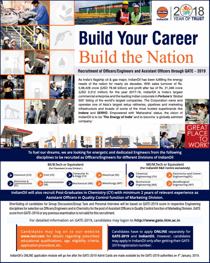 Indian Oil Corporation Limited (IOCL) Recruitment through GATE 2019