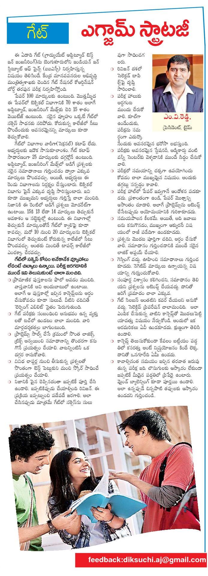 | 1 | GATE expected to see more Telugu aspirants this year |