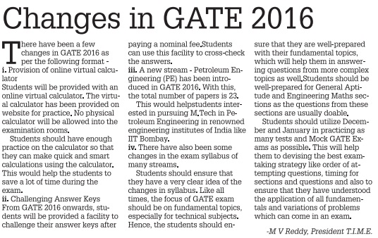 | 3 | GATE 2017 to be conducted abroad to attract foreign students | Hans India (Young Hans) | 30th June, 2016 |