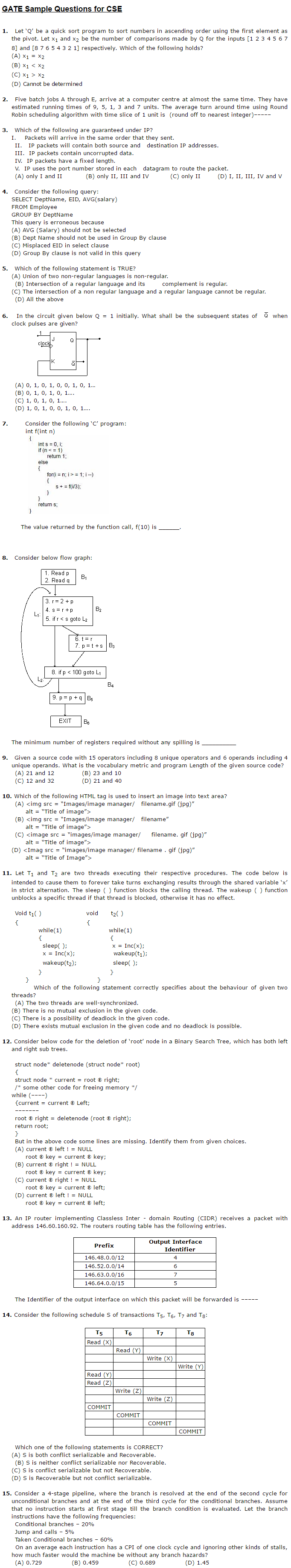 GATE Sample Questions - CS