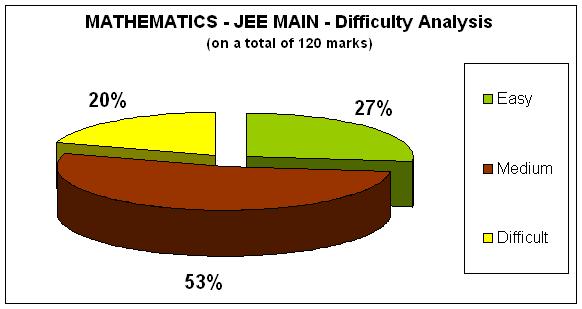 Mathematics part of JEE Main 2015 was challenging as far as a student is concerned. Even a well prepared student might not identify all 'easy' questions and if he/ she avoid the traps set in between they will be able to live through. The paper has only about 27% of marks from ‘easy’ category questions and has over 50% of the paper set in the medium difficulty level. Few questions that posed difficulty are genuinely concept wise difficult and tricky in nature.