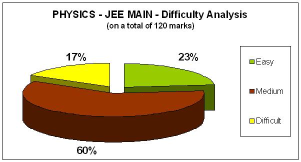 The overall difficulty level of the Physics part is slightly on the higher side. Some questions were time consuming; some areas like wave optics, properties of liquids etc. were totally not represented in the paper. But Thermodynamics has suddenly become an area of importance in this year's JEE Main paper. Percentage of difficult questions has gone down compared to JEE Main 2014, but due to the decrease in easy questions and the increase in medium level questions, the Physics part of the paper was rated 'difficult' by students.